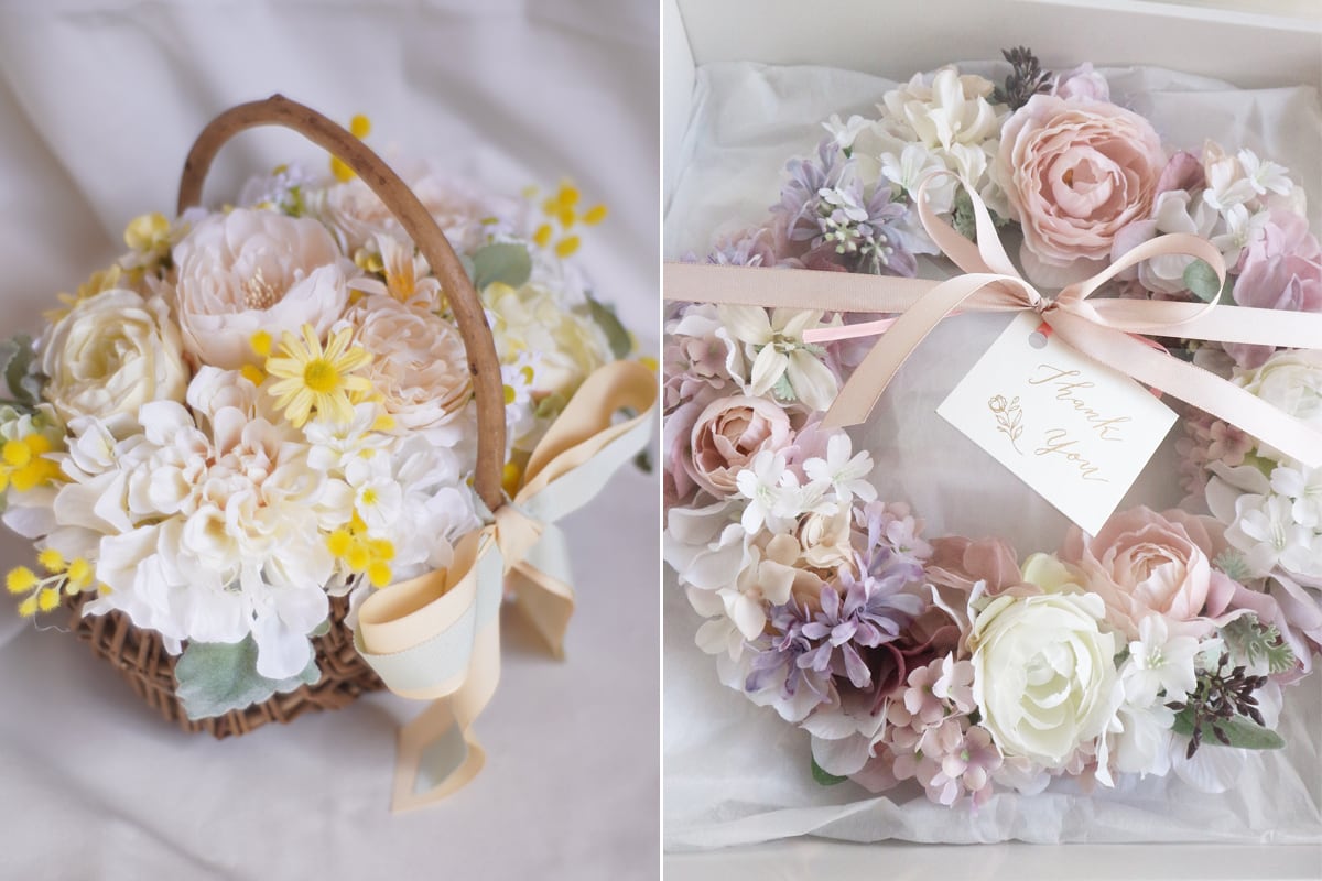アーティフィシャルフラワーのバスケットアレンジメント(オーダーメイド)(送料込)