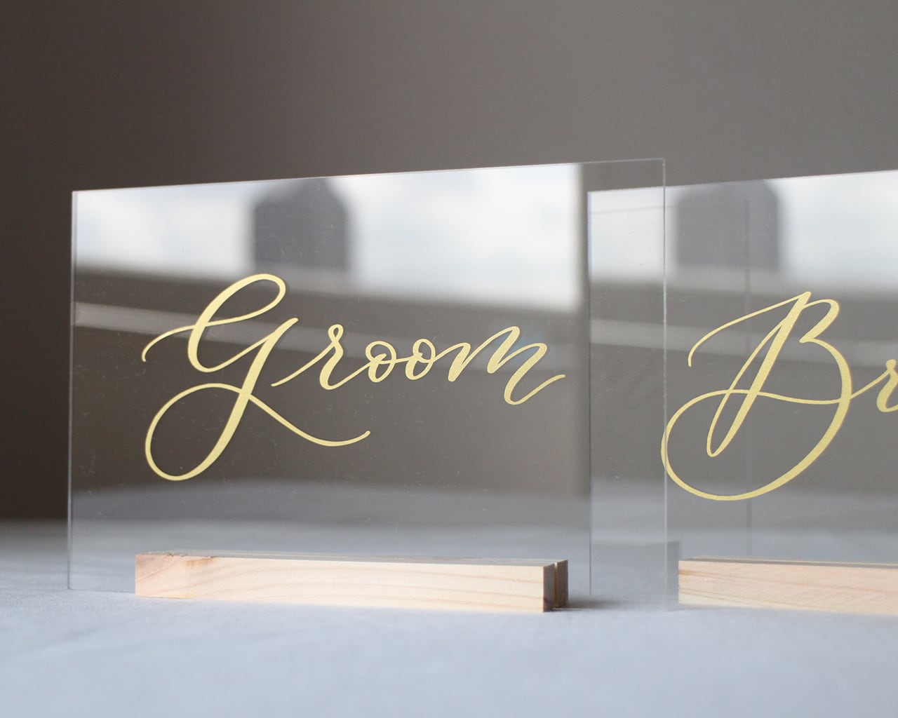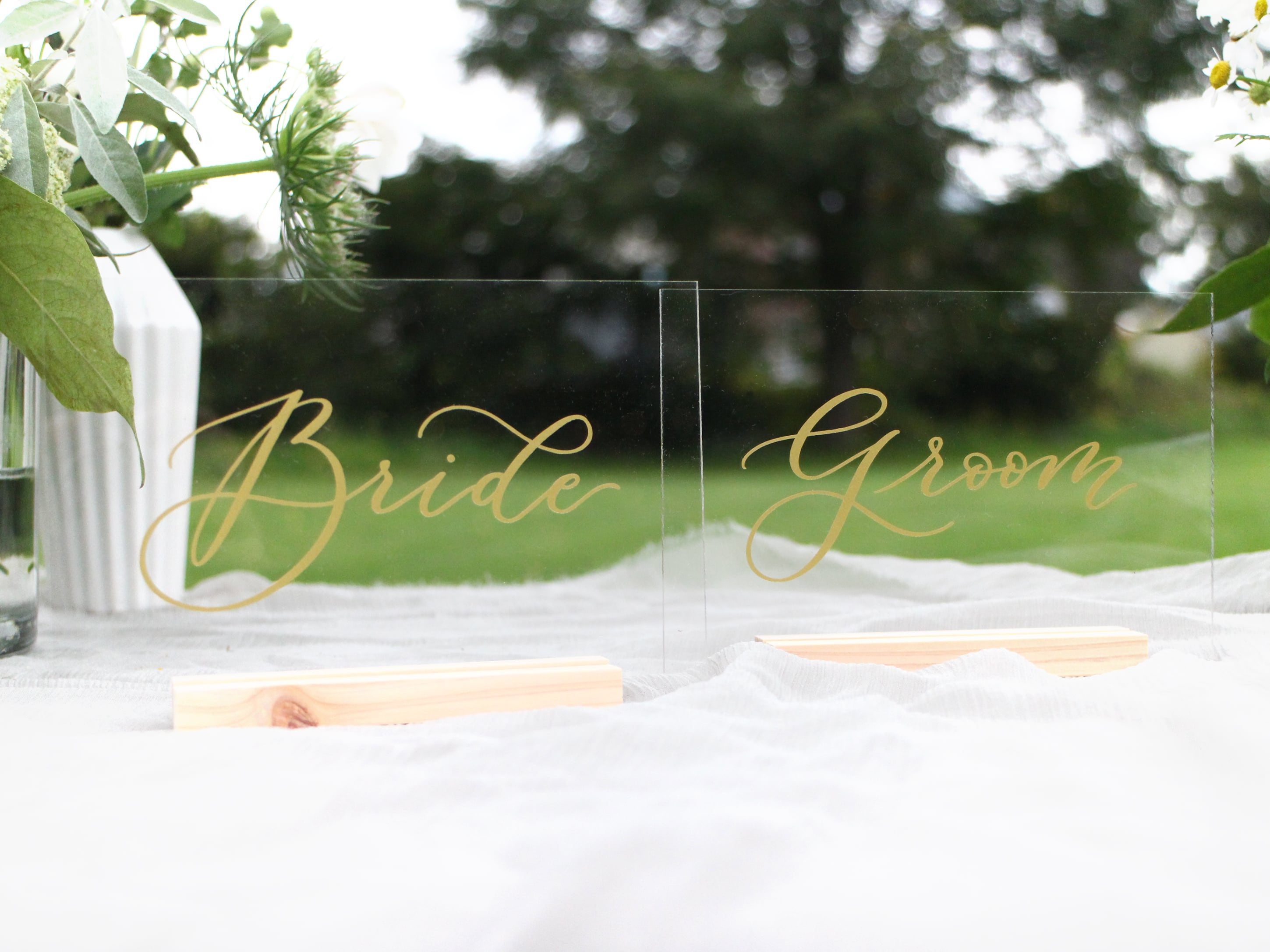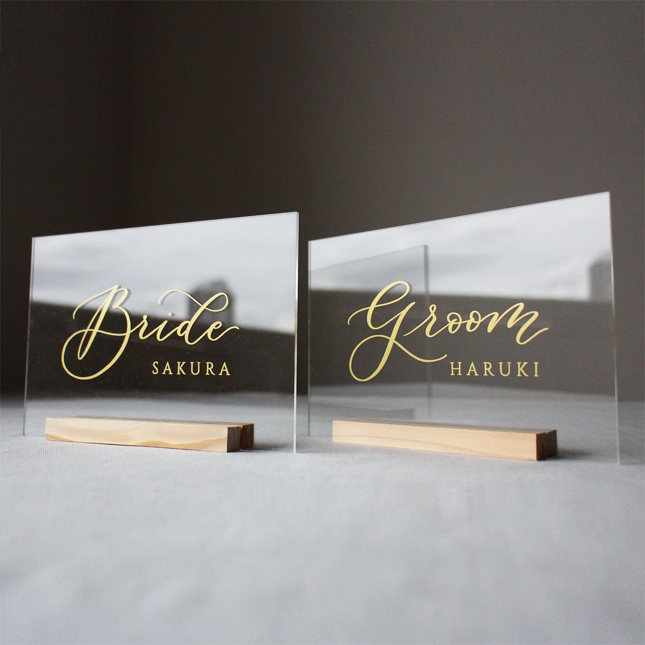 Bride & Groom 受付サインペアセット(透明×ゴールド)(オーダーメイド)