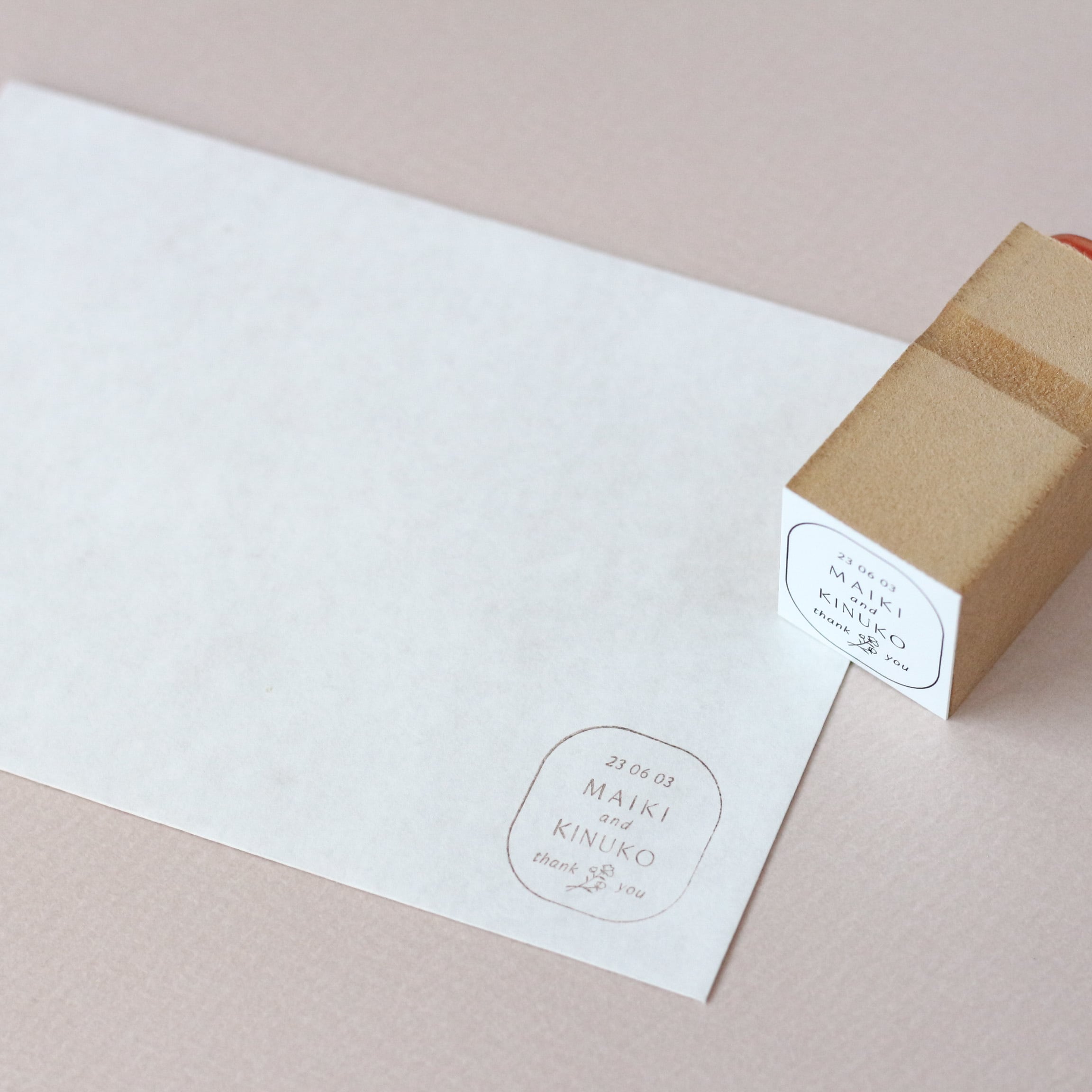 お二人のお名前とお日付、thankyouの言葉を入れたオリジナルのスタンプです。